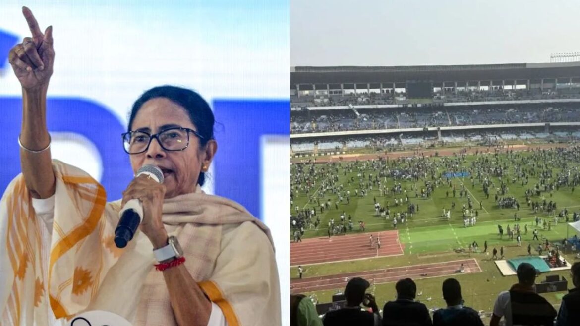 Mamata Benarjee Apologies Lionel Messi: గోట్ టూర్ ఆఫ్ ఇండియాలో భాగంగా ఫుట్బాల్ దిగ్గజం లియోనల్ మెస్సీ, ఆటగాళ్లు లూయిస్ సూరెజ్, రోడ్రిగో డీ పాల్ కోల్కతాలోని సాల్ట్ లేక్ స్టేడియంకి విచ్చేశారు. అంతకుముందు లేక్ టౌన్లో తన 70 అడుగుల విగ్రహాన్ని ఆవిష్కరించారు. అంతకుముందు షారుక్ ఖాన్ మెస్సీకి ఘనస్వాగతం పలికారు. ఆ తర్వాత సాల్ట్ లేక్ స్టేడియంకి చేరుకున్నారు. కేవలం మెస్సీ 10 నిమిషాలు మాత్రమే స్టేడియంలో ఉండటంతో ప్రేక్షకులు ఆగ్రహించారు.